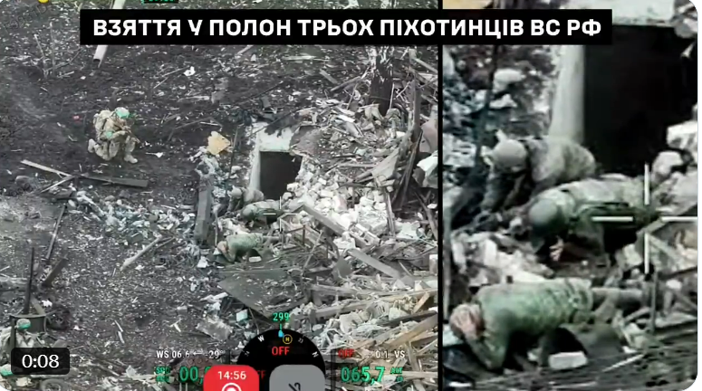在波克罗夫斯克市区,乌克兰部队在来自第155旅“安娜·基辅斯卡”在逐户搜查中,在一处地下室里抓获了三名俄罗斯步兵。